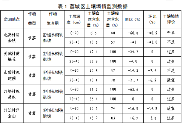 2025年10月10日,荔城区土壤监测点墒情监测结果汇总如下: