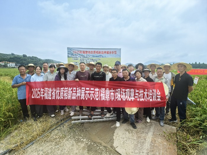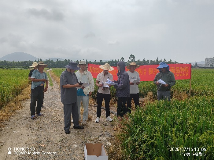7月16日上午,福鼎市农业农村局在太姥山镇下尾村组织开展2025年优质稻新品种展示示范现场观摩暨种子法律法规宣传活动,局分管领导、县乡两级农技专家、种粮大户、种子经营户等40余人参会。