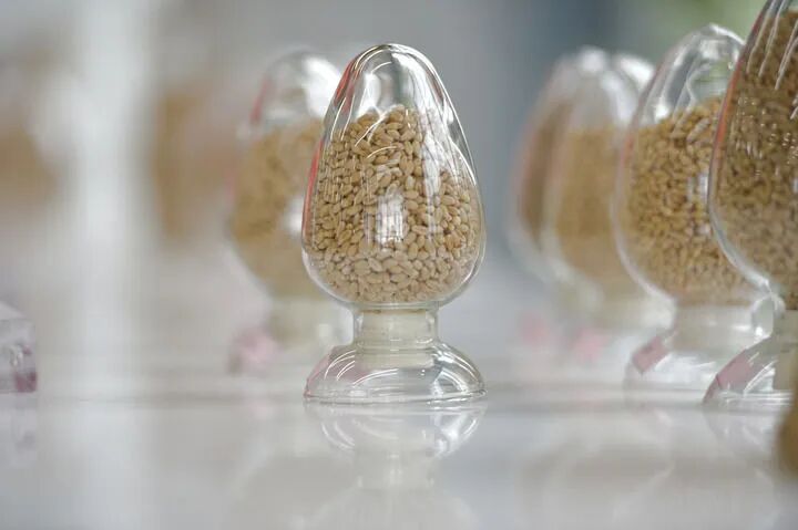 这是2024年5月31日在位于河南新乡的中原农谷国家生物育种产业创新中心神农种业实验室拍摄的种子样本。新华社记者 刘力航 摄