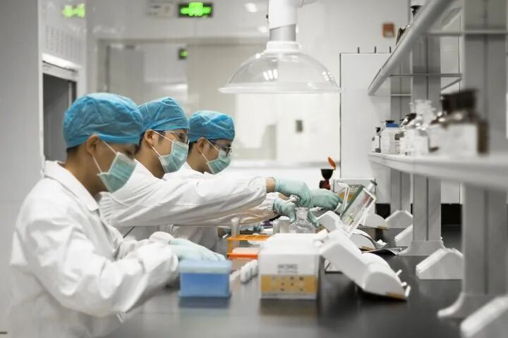 科研人员在圣农集团技术中心实验室里做实验(资料照片)。新华社发