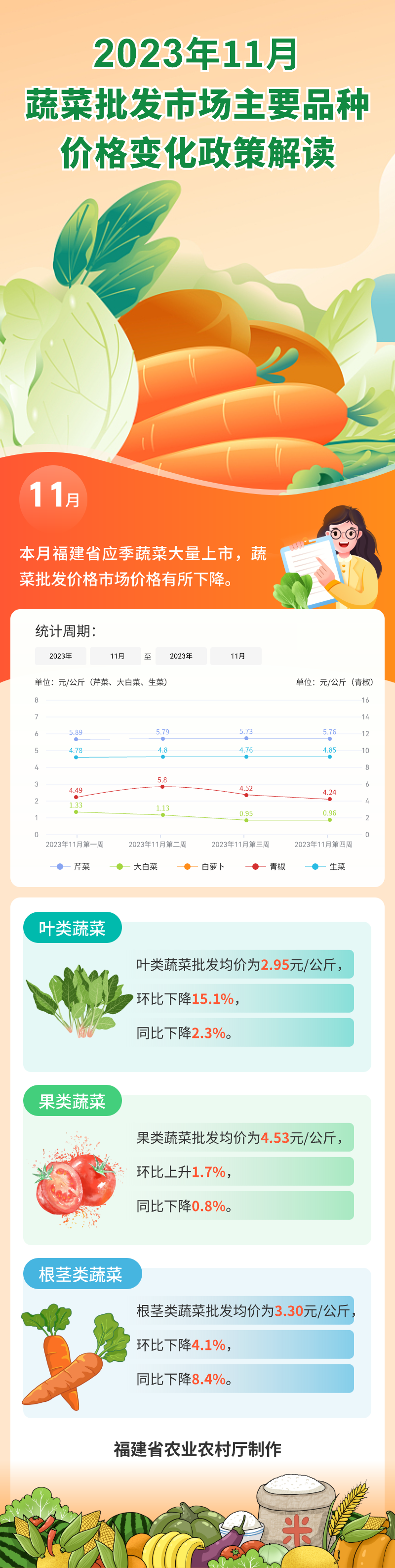 图解:2023年11月蔬菜批发市场主要品种价格变化